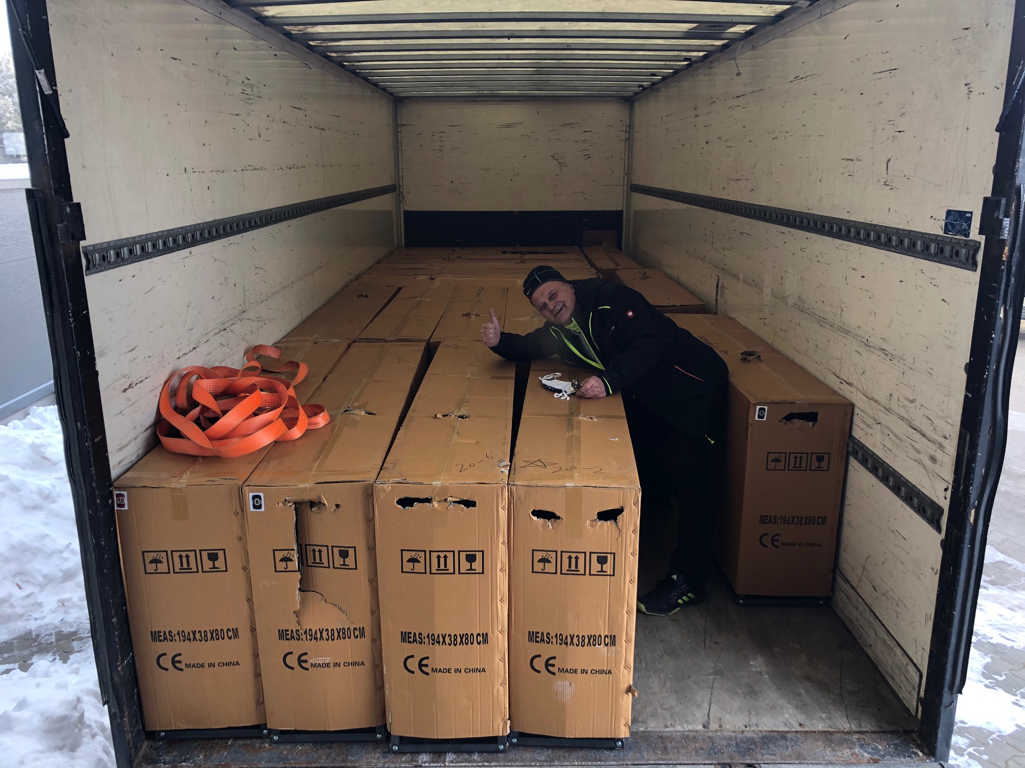 Dali jsme dokupy kačáky a odeslali. A požádali jsme číňana aby poslal foto z výroby. Dal nám i kód podle kterého jsme mohli sledovat nejen stav výroby, ale kdy bude naloženo na loď, a kdy přijde do Terstu a posleze do Práglu na Cargo. Výroba trvala cca 14 dní potom se 3 dny nakládalo do kontejneru, dále se motala loď po dalších přístavech v Číně. Každý den jsme sledovali loď s kontejnerem a podle výpočtů měla být v Terstu cca za 30 dní. Konečně kontejner dorazil do Terstu. Oslovilo nás Cargo že do 5 dnu dorazí do Práglu. Datun padlo A Cargo nám dalo termím kdy je možno vydzvednout a současně nás upozornili že za kadý den kdy nevydzdedneme budeme platit skladné. (500Eček)  Firma Kletch.cz nám laskavě zapůjčila náklaďák, já zasedl za volant a vyrazil do Práglu pro ečopry.